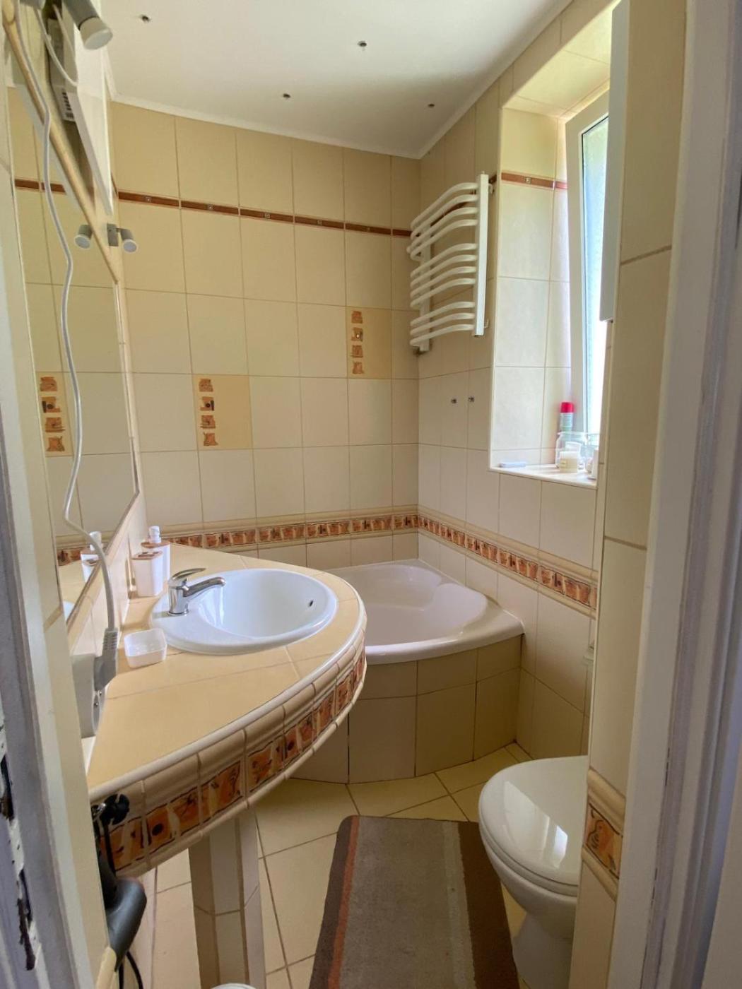 Pokój Dwuosobowy typu Deluxe (2 osoby dorosłe + 1 dziecko). The double room offers soundproof walls, a coffee machine, as well as a private bathroom boasting a bath and a hairdryer. Guests can make meals in the kitchen that is fitted with a stovetop, a refrigerator, kitchenware and a microwave. This double room has a private entrance, flat-screen TV with cable channels, garden views, as well as chocolate for guests. The unit has 1 bed. Pokój Dwuosobowy - 3 osobowy. Powierzchnia pokoju ok.: 9 mkw.