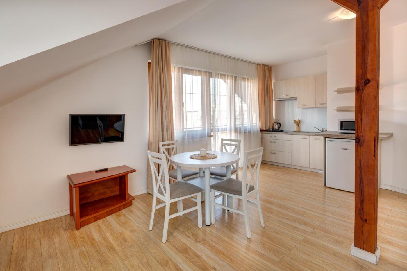 Apartament rodzinny typu Suite z balkonem. Goście mają do dyspozycji aneks kuchenny z płytą kuchenną, lodówką i przyborami kuchennymi. Udogodnienia obejmują sprzęt do grillowania. Ten przestronny pokój rodzinny oferuje ponadto zestaw do parzenia kawy i herbaty, część wypoczynkową, balkon z widokiem na ogród oraz prywatną łazienkę z kabiną prysznicową. W tej opcji zakwaterowania zapewniono 2 łóżka. Rodzinny - 4 osobowy. Powierzchnia pokoju ok.: 42 mkw. ;