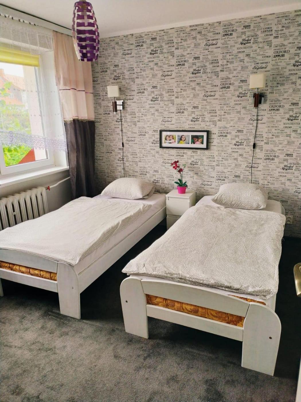 Pokój z 2 łóżkami pojedynczymi i wspólną łazienką. In the well-fitted kitchenette, guests will find a stovetop, a refrigerator, kitchenware and a microwave. The twin room features an electric kettle, as well as a shared bathroom boasting a shower. The unit has 2 beds. Pokój z 2 łóżkami pojedynczymi - 2 osobowy. Powierzchnia pokoju ok.: 20 mkw. ;