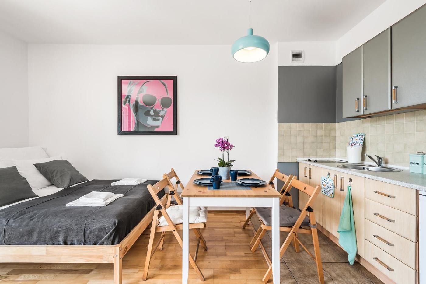 Apartament z 1 sypialnią i balkonem. This apartment consists of 1 bedroom, a kitchen and 1 bathroom with a shower. The fully equipped kitchen features a stovetop, a refrigerator, kitchenware and a toaster. Featuring a balcony with ancourtyard view, this apartment also provides a washing machine and a flat-screen TV with cable channels. The unit offers 2 beds. Apartament - 4 osobowy. Powierzchnia pokoju ok.: 35 mkw.