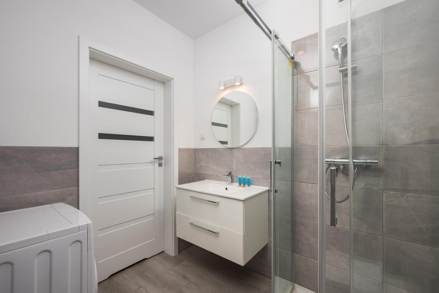 Apartament z 1 sypialnią i balkonem. Boasting a private entrance, this apartment features 1 living room, 1 separate bedroom and 1 bathroom with a shower and a hairdryer. In the well-equipped kitchen, guests will find a stovetop, a refrigerator, a dishwasher and kitchenware. The apartment features a washing machine, a tea and coffee maker, a seating area along with a balcony. The unit has 2 beds. Apartament - 4 osobowy. Powierzchnia pokoju ok.: 54 mkw.