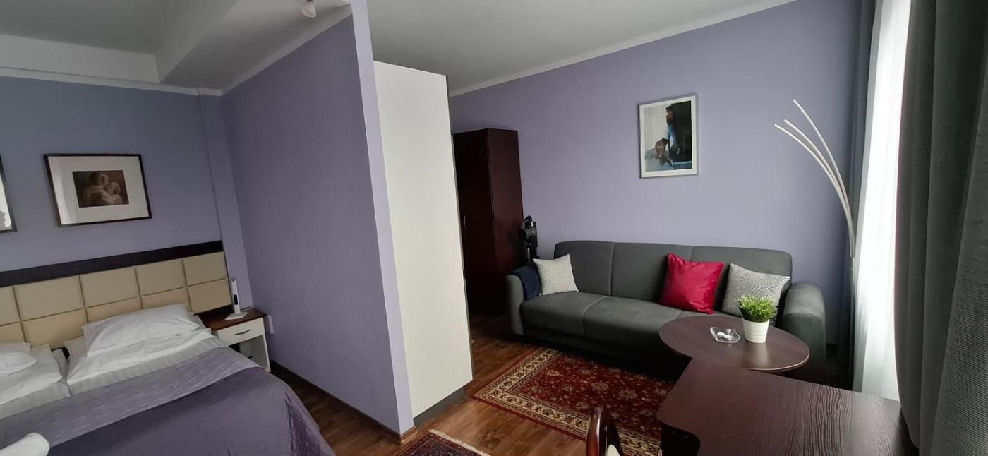 Studio. The studio features a sofa, parquet floors, as well as a private bathroom featuring a shower. In the fully equipped kitchenette, guests will find a stovetop, a refrigerator, kitchenware and a toaster. The studio offers a flat-screen TV, soundproof walls, a tea and coffee maker, a wardrobe as well as garden views. The unit offers 1 bed and 1 futon. Studio - 3 osobowy. Powierzchnia pokoju ok.: 27 mkw.