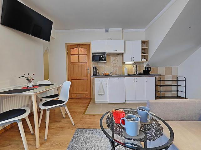 Apartament z widokiem na góry. Boasting a private entrance, this apartment comes with a kitchenette, 1 bedroom and 1 bathroom with a walk-in shower and a hairdryer. Guests will find a stovetop, a refrigerator, kitchenware and a microwave in the fully equipped kitchenette. The apartment also includes a barbecue. Featuring a balcony with garden views, this apartment also features a tea and coffee maker and a flat-screen TV with cable channels. The unit has 1 bed. Apartament - 3 osobowy. Powierzchnia pokoju ok.: 25 mkw.
